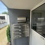 Una cocina en el alojamiento incluye un horno de microondas, un hervidor eléctrico y utensilios de cocina. Está justo al lado de la estación de autobuses Pothmannshof.